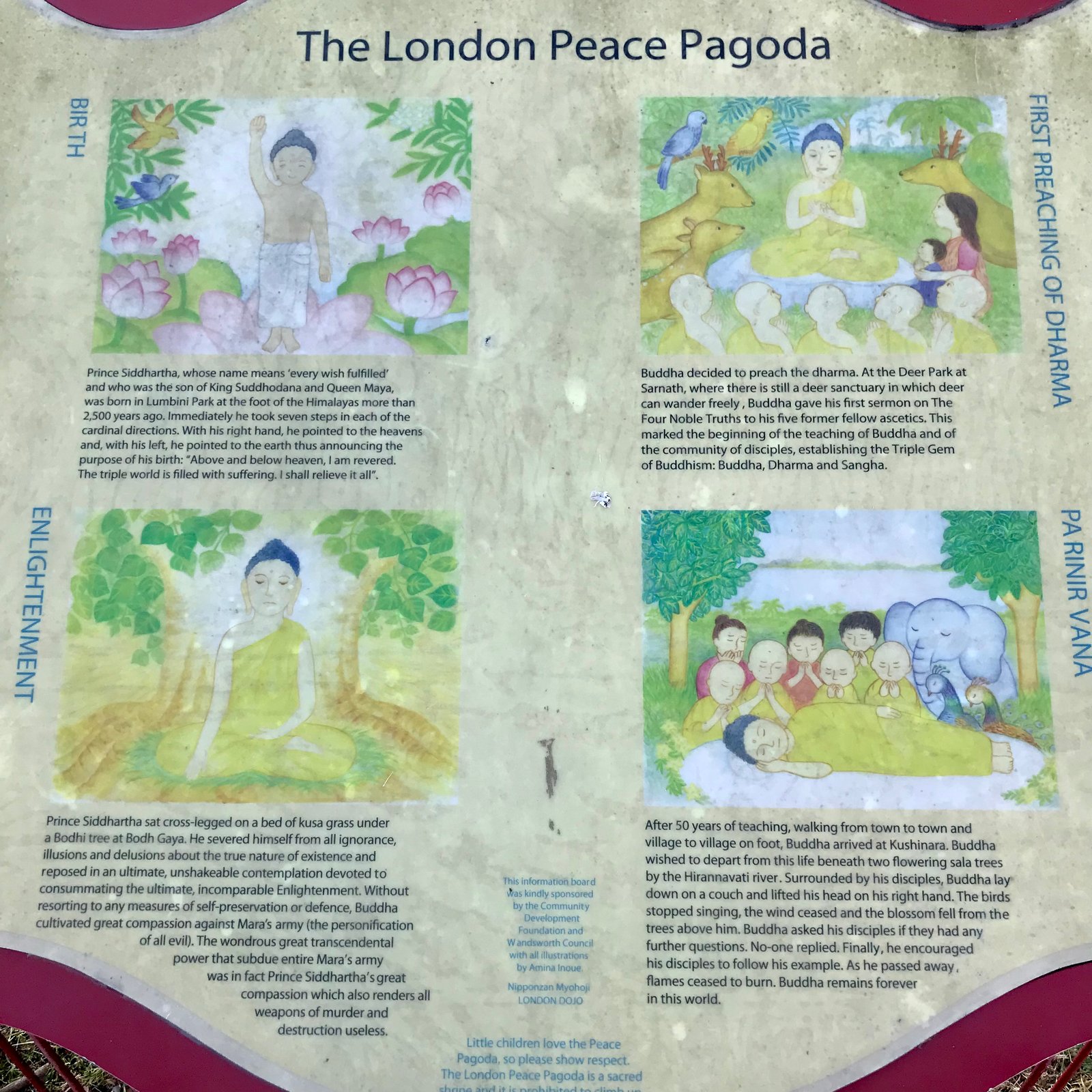 The London Peace Pagoda that signifies Birth, Peace and Enlightenment by Buddha.